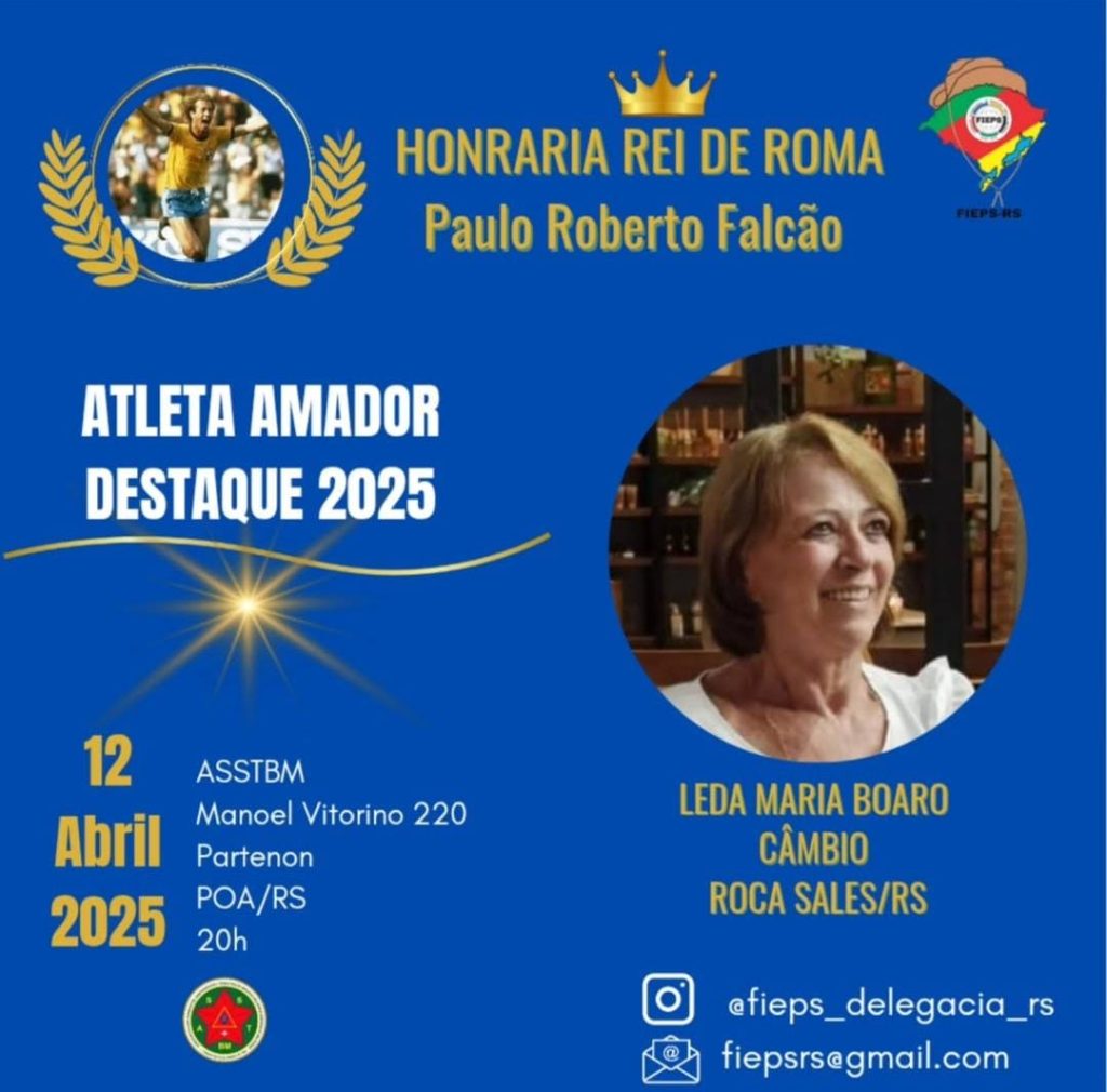 No último sábado, 12 de abril, a cidade de Porto Alegre foi palco de uma noite memorável para o esporte amador gaúcho. A tradicional Honraria Rei de Roma – Paulo Roberto Falcão reconheceu os destaques do esporte no Rio Grande do Sul, em uma cerimônia marcada pela emoção e pela presença de grandes nomes do cenário esportivo nacional e internacional.