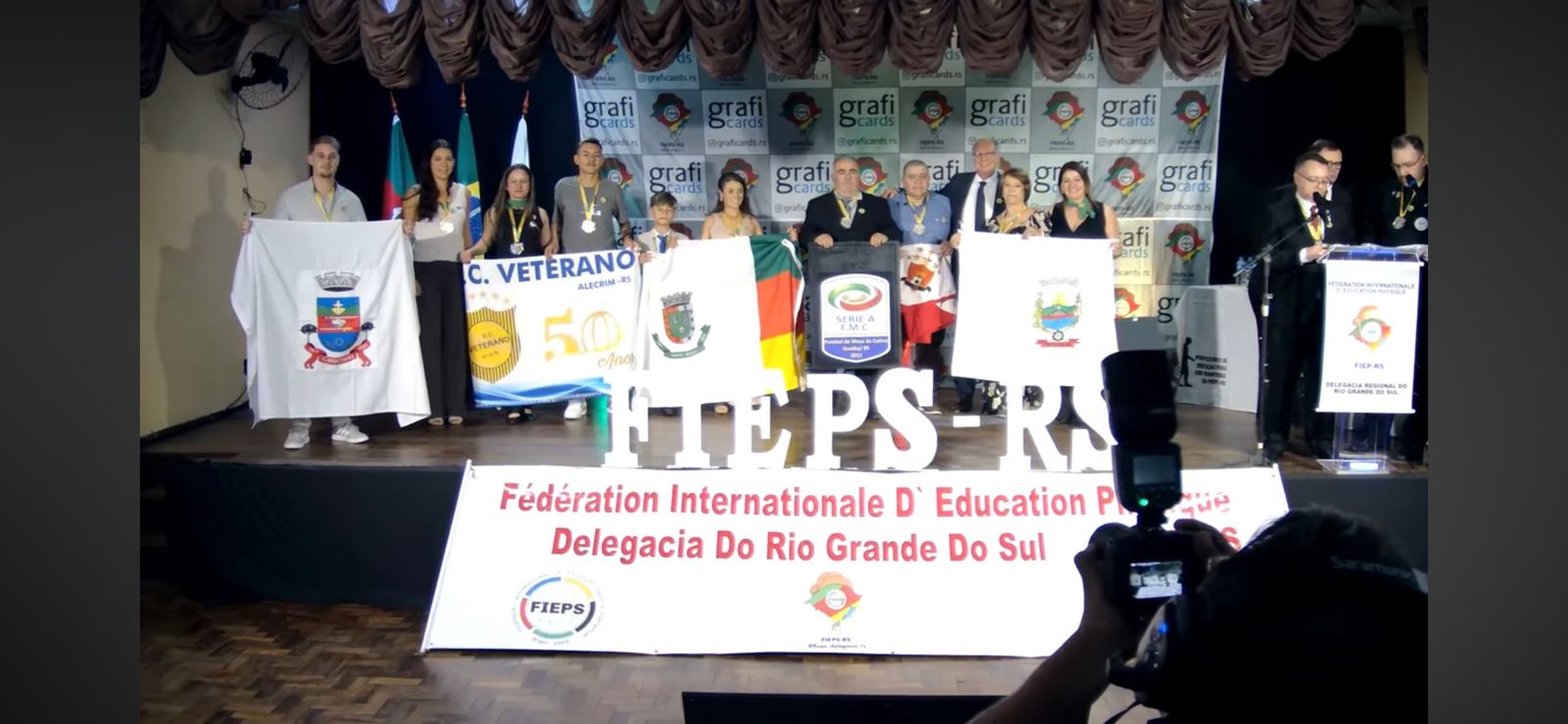 A atleta esteve acompanhada na cerimônia pela professora Márcia Zanchet e por colegas de equipe, recebendo a homenagem das mãos do próprio Paulo Roberto Falcão, ícone do futebol brasileiro, e do delegado regional da FIEPS – Federação Internacional de Educação Física e Esportiva.