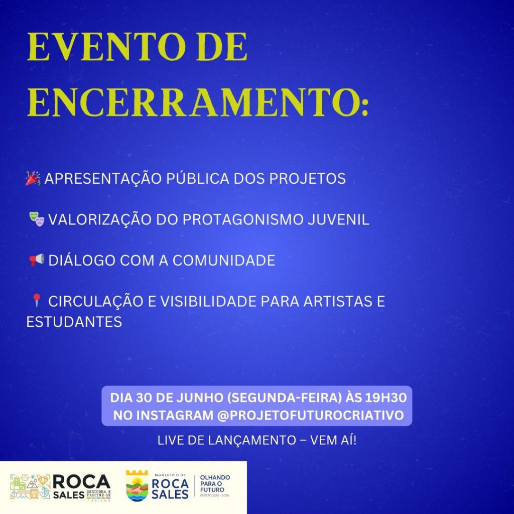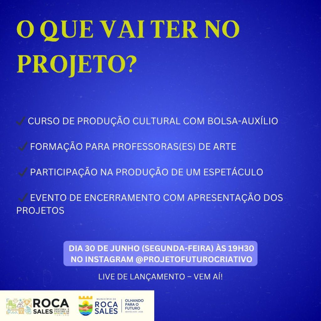 Para Roca Sales, o Projeto Futuro Criativo representa uma grande oportunidade de capacitação, visibilidade e valorização da juventude, além de fortalecer o papel da cultura como ferramenta de transformação social. A expectativa é de que a ação gere impactos duradouros tanto nas escolas quanto nos espaços culturais e artísticos da cidade.