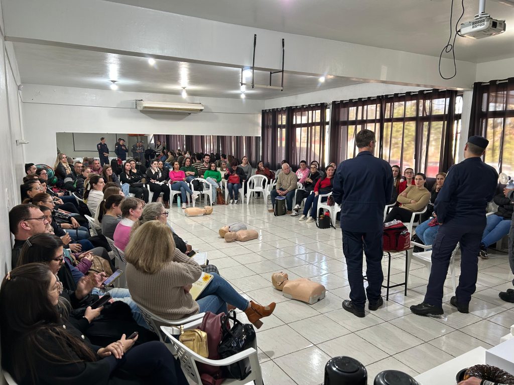 A formação foi conduzida pelos bombeiros de Encantado e também contou com a presença dos funcionários da SMEC (Secretaria Municipal de Educação e Cultura), incluindo a própria secretária da Educação, Helena Koste.