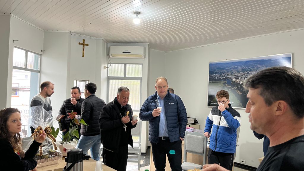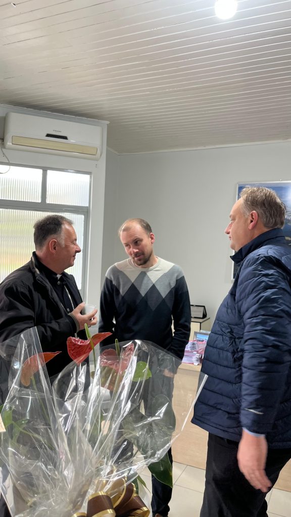 A visita também teve a presença do padre João Paulo Schäfer, pároco da Paróquia São José, que acompanhou Dom Carlos durante a celebração. O momento foi marcado por palavras de fé, esperança e união, fortalecendo os laços entre a comunidade e a administração municipal.