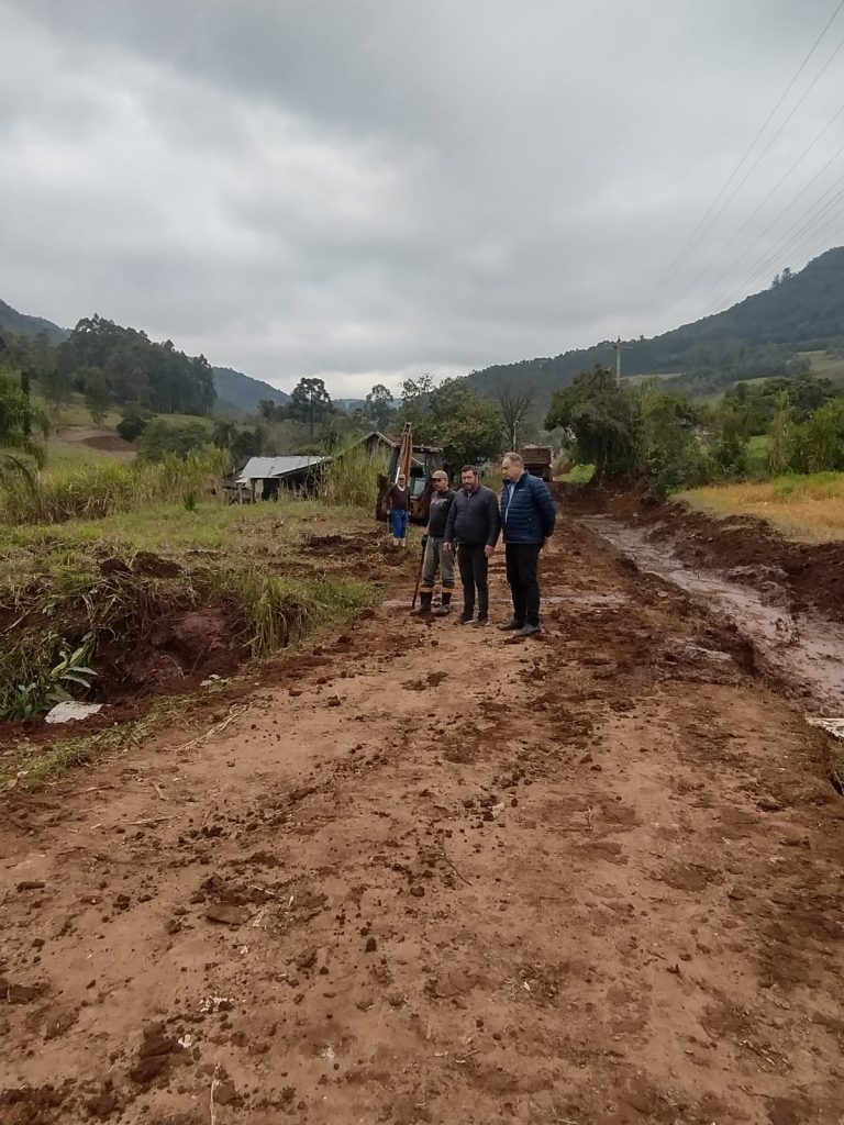 Na tarde de ontem, 14, o prefeito de Roca Sales, Jones Wunsch, o Mazinho, acompanhou o secretário de Obras, Cleber Scottá, durante os trabalhos realizados na estrada da Linha Brasil.