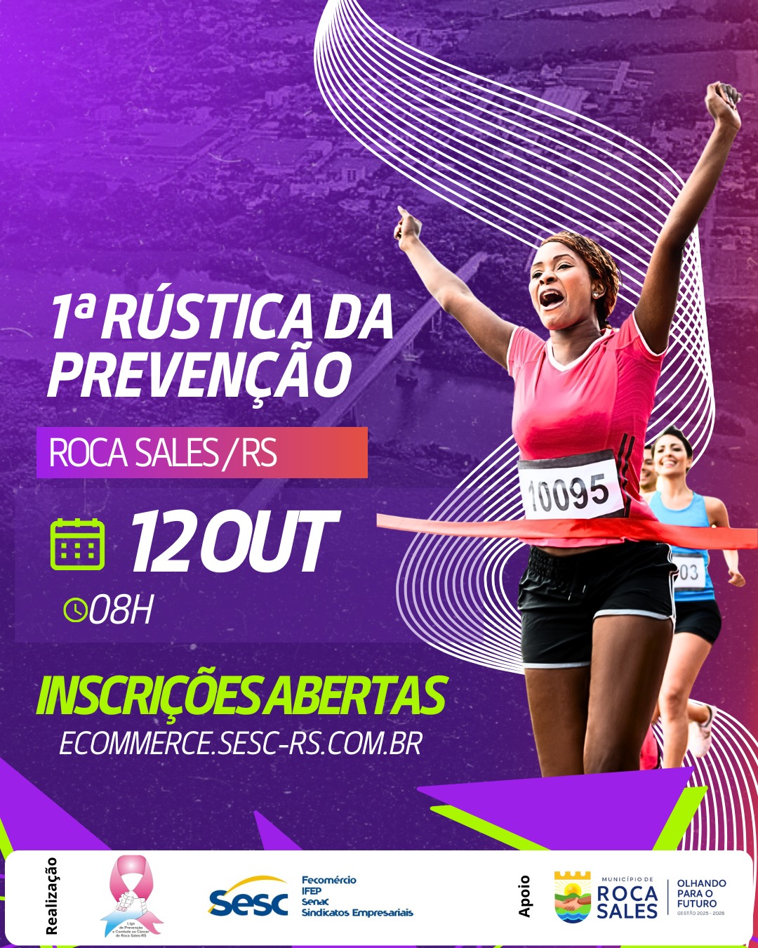 A Prefeitura Municipal de Roca Sales, em parceria com a Liga do Câncer de Roca Sales e o Sesc de Lajeado, anuncia a realização da primeira edição da Rústica da Prevenção, que acontecerá no dia 12 de outubro, no município.