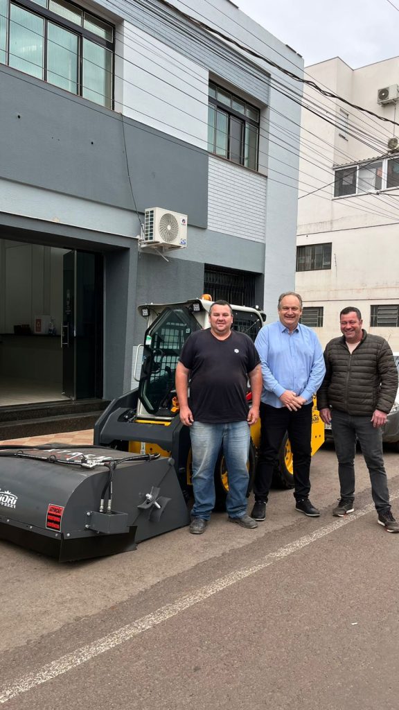 A semana começou com boas notícias em Roca Sales. O prefeito Jones Wunsch (o Mazinho), acompanhado do secretário de Obras Cléber Scottá e do responsável pela limpeza e manutenção da cidade, Giovani Vigolo, anunciou a aquisição de uma importante máquina que irá auxiliar diretamente nos serviços urbanos: uma mini carregadeira equipada com vassoura e capinadeira.