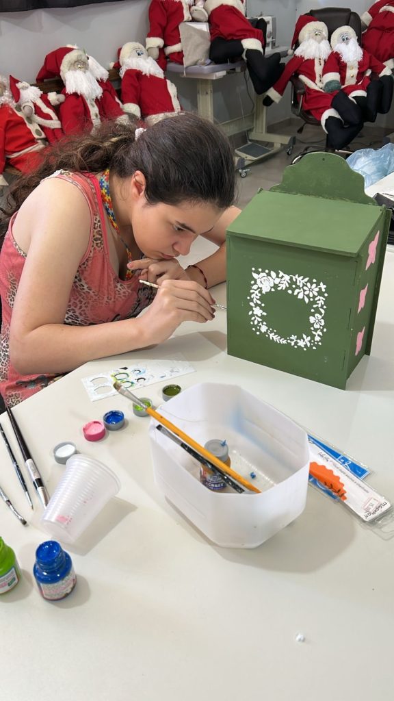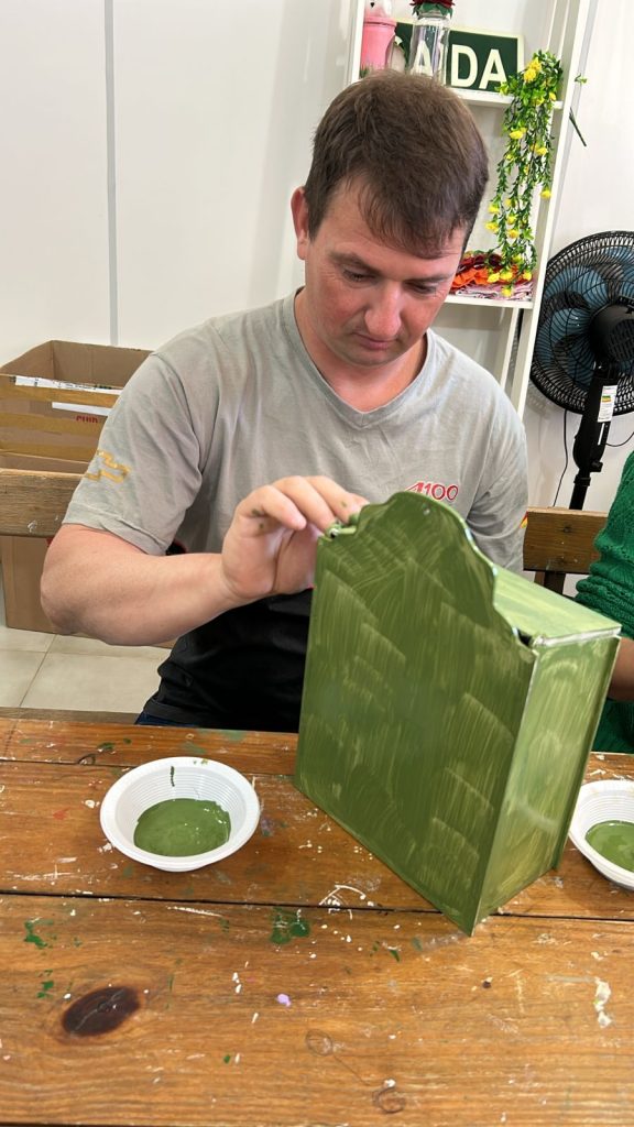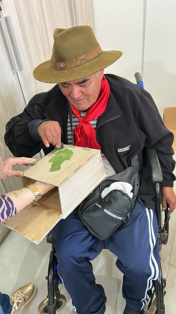 No artesanato, cada participante personalizou a sua própria caixa de erva-mate, unindo a criatividade à vivência cultural. A atividade, além de estimular a expressão individual, também reforçou a importância do pertencimento à identidade gaúcha.