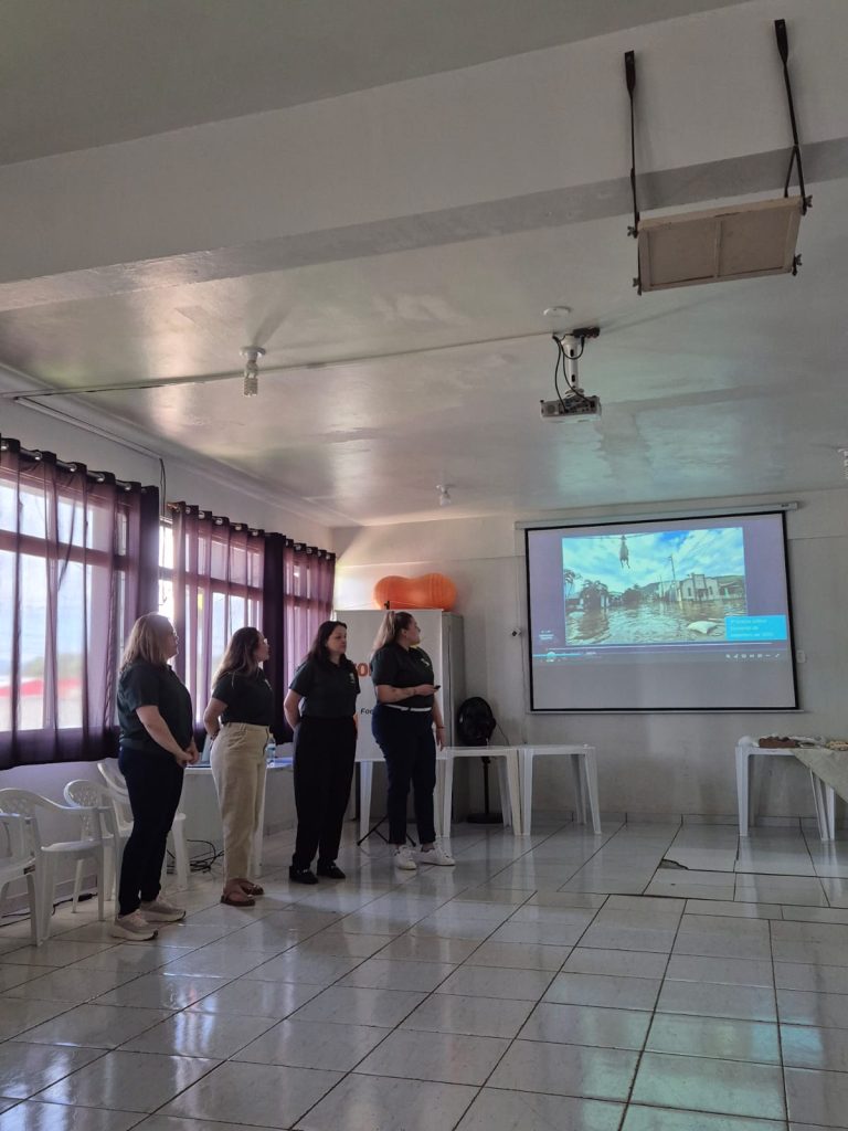 A programação iniciou com as boas-vindas da Secretária de Assistência Social e Habitação, Sílvia Prade Vuaden, que destacou a relevância de momentos de formação e acolhimento entre as equipes após os desafios enfrentados pela região. Em seguida, a educadora física Márcia Zanchet conduziu alongamentos e atividades dinâmicas, proporcionando descontração e preparo para o dia.