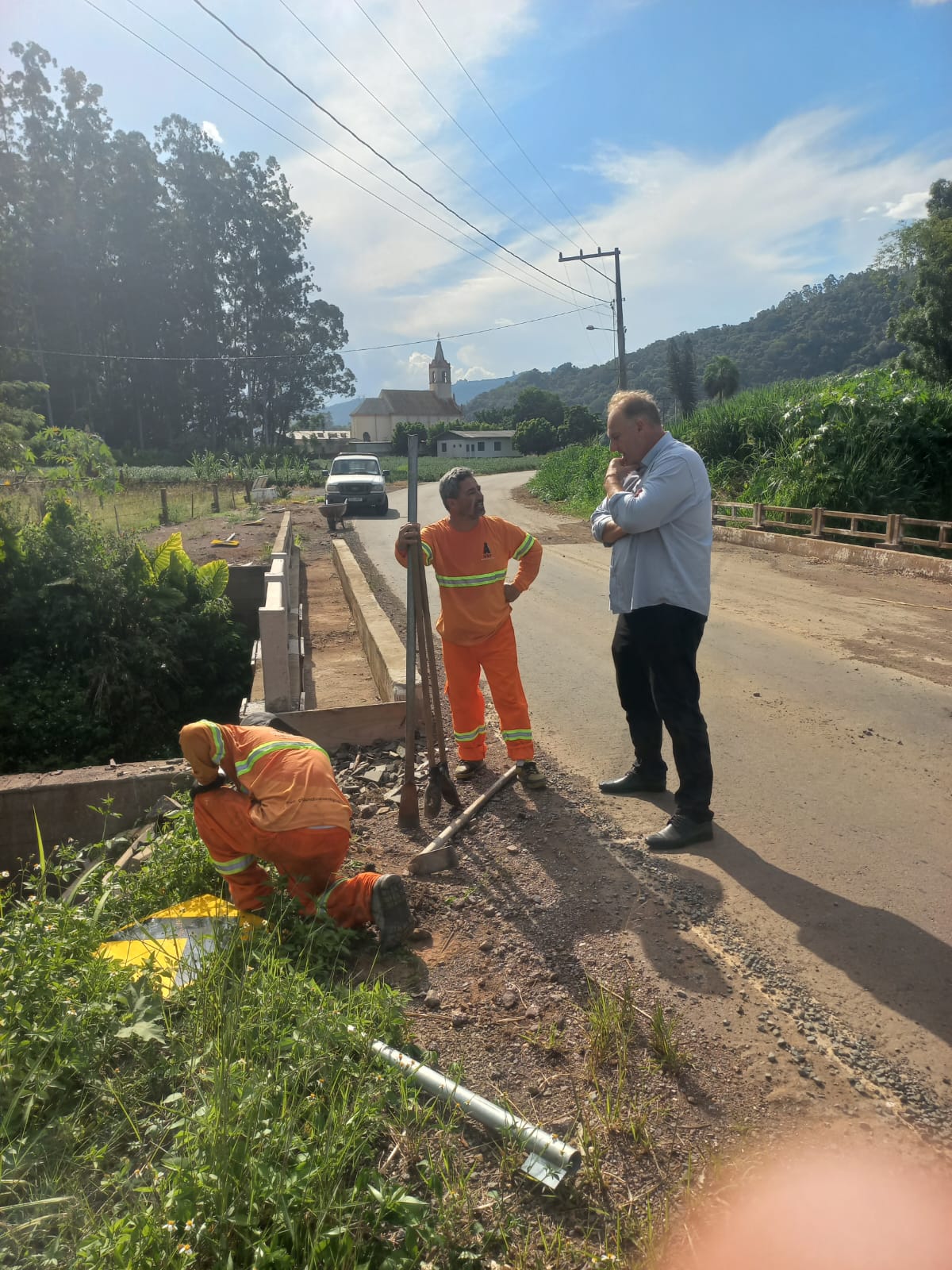 Outro local visitado foi a área onde será construída a nova ponte da Linha do Parobé. A estrutura fará a ligação com a via da Linha de Parobé e será fundamental para interligar a Linha Marechal Floriano Alta com a cidade, facilitando o deslocamento, promovendo maior integração entre as comunidades do interior e ampliando o acesso ao perímetro urbano.