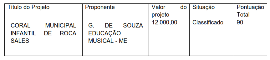 atribuições legais, após a avaliação dos projetos, PUBLICA A LISTA DE